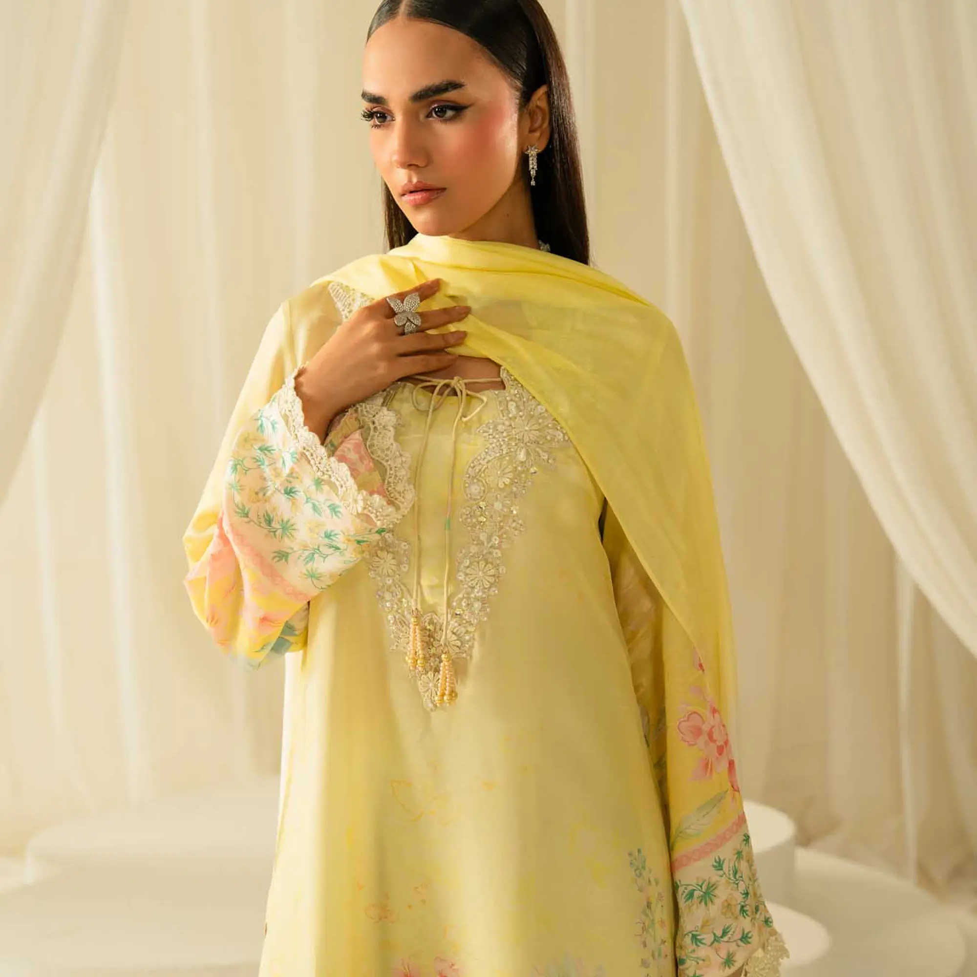 Neckline: Hand-embellished with intricate detailing