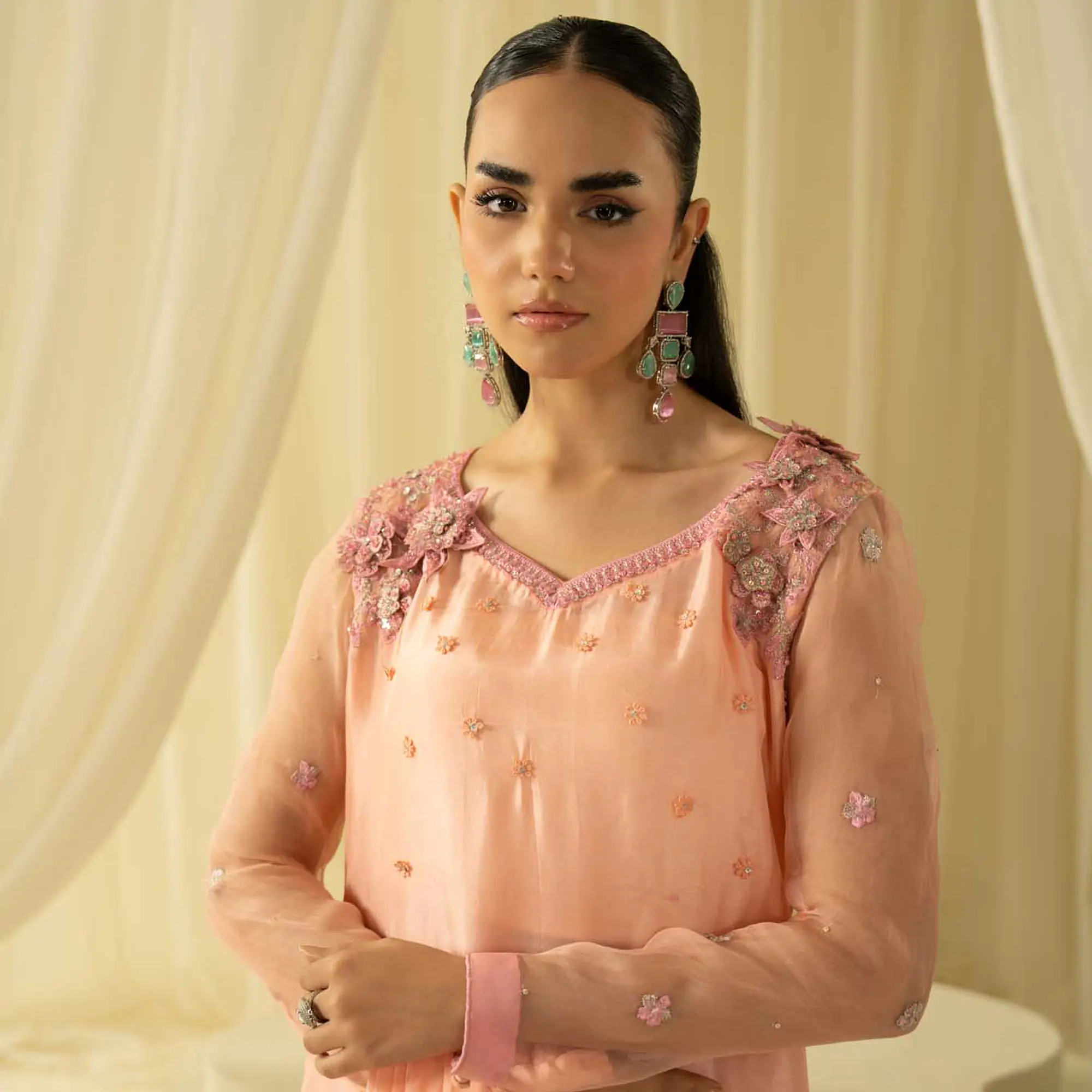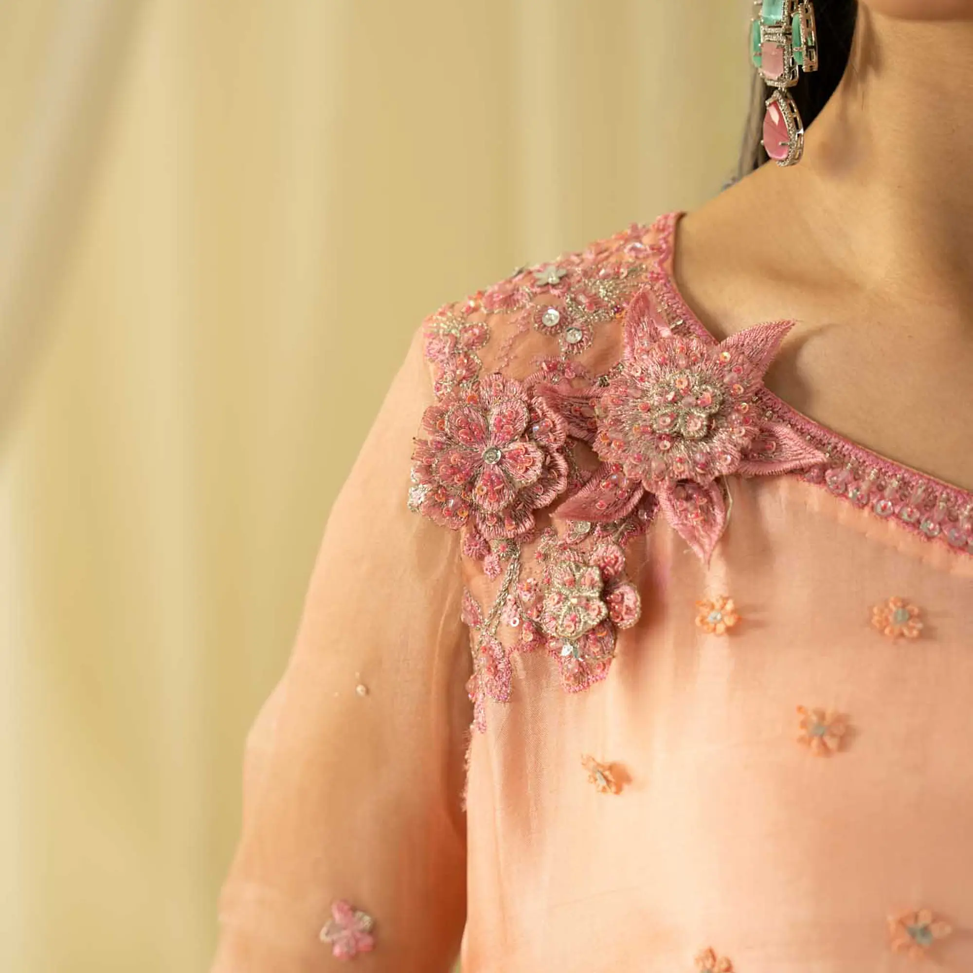 Neckline: Hand-embellished with detailed cut-work embroidery