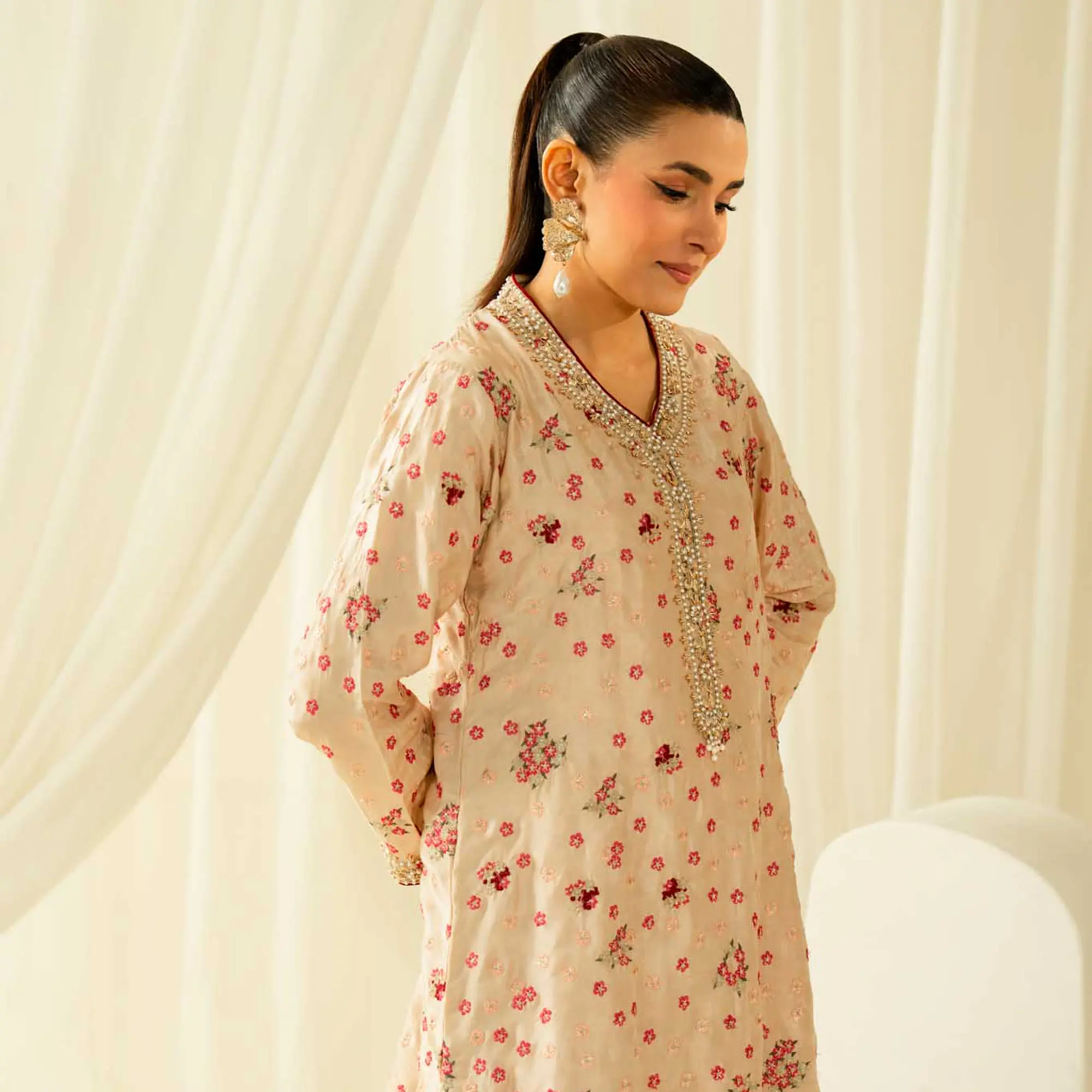Hand-embellished neckline with delicate finishing